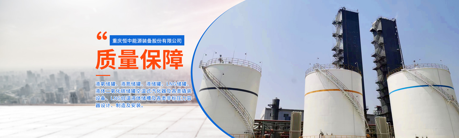 重慶恒中能源裝備股份有限公司創建于2002年初,是中國化工裝備協會會員、中國機械工程學會壓力容器分會會員、重慶市焊接協會理事單位。公司主要從事一、二類壓力容器設計生產、安裝及壓力管道安裝;液氧、液氮、液氬、二氧化碳、LNG低溫液體儲槽及各類非標壓力容器的設計、制造;LNG加氣站、LNG氣化站、LNG液化工廠解決方案及成套設備;撬裝式調壓設備、汽化器及各類成套撬裝設備;大型平底儲槽現場制作及安裝。